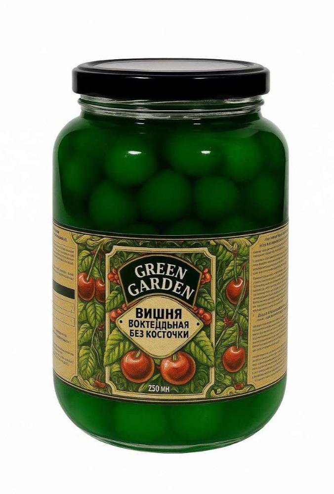 это декоративные сладкие ягоды в густом ароматном сиропе, созданные специально для коктейлей, десертов, мороженого и украшения выпечки. Зелёная коктейльная вишня обладает ярким цветом, плотной структурой и насыщенным сладким вкусом, благодаря чему идеально подходит для барменов, кондитеров и домашних кулинаров. Продукт полностью готов к употреблению, а стеклянная банка объёмом 720 мл обеспечивает удобное хранение и надежно сохраняет вкус и аромат.