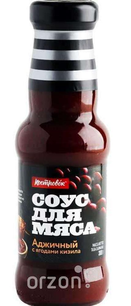 Аджичный соус Костровок с пикантно-кислыми ягодами кизила передаёт колорит грузинской кухни. Предлагаем вам необычный соус, который обязательно украсит ваш пикник или домашний мясной стол. «Аджичный на кизиле» содержит в составе патоку, готовый острый аджичный соус с красным перцем и чесноком, виноградный и вишневый соки, паприку, лук, ароматные кориандр и пажитник и одну особенность — пюре из ягод кизила. Этот пикантный продукт можно использовать как добавление к готовому мясу, а также как острую приправу к свежим овощным салатам.Соус добавит яркую ноту вкуса шашлыку из свинины, рёбрышкам или мясу, приготовленному на углях. Хранить в сухом месте при от 0 до +25 °C. После вскрытия продукт хранить закрытым в холодильнике не более 30 суток.